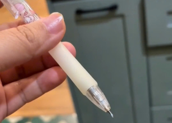 Một phụ huynh khác cũng chia sẻ hình ảnh một chiếc bút có ngoại hình bắt mắt, nhưng lại có đầu vát như mũi dao nhỏ. Ảnh: Internet.