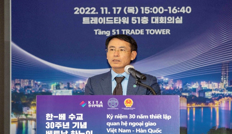 Phó Chủ tịch điều hành Hiệp hội Thương mại Hàn Quốc cho biết, ông rất vui mừng khi Hàn Quốc hiện là đối tác quan trọng hàng đầu của Việt Nam trên nhiều lĩnh vực, trong đó điểm sáng là về hợp tác kinh tế. Hàn Quốc đang là nhà đầu tư lớn nhất vào Việt Nam, là đối tác hợp tác phát triển (ODA), du lịch, lao động lớn thứ hai và đối tác thương mại lớn thứ ba... Đặc biệt, hợp tác cấp địa phương giữa Hà Nội và Hàn Quốc cũng đang tiếp tục được đẩy mạnh và đạt được những kết quả cụ thể, thực chất trên nhiều lĩnh vực.