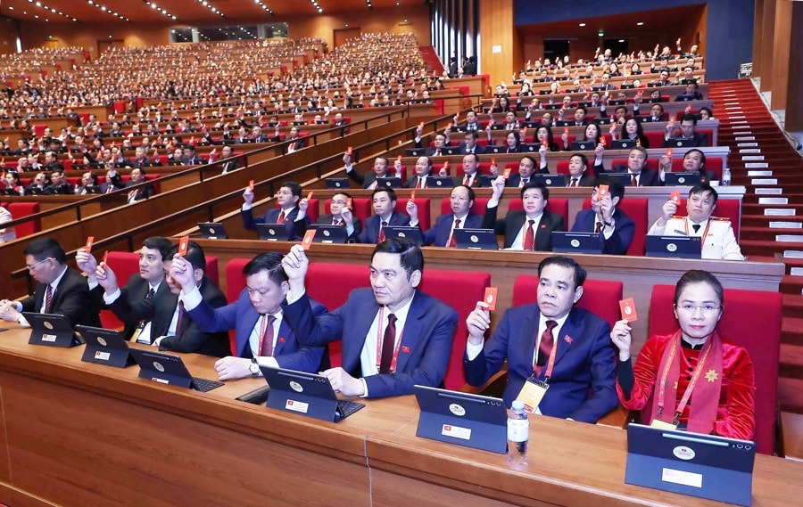Các đại biểu biểu quyết thông qua Quy chế làm việc của Đại hội đại biểu toàn quốc lần thứ XIV của Đảng. Ảnh: TTXVN