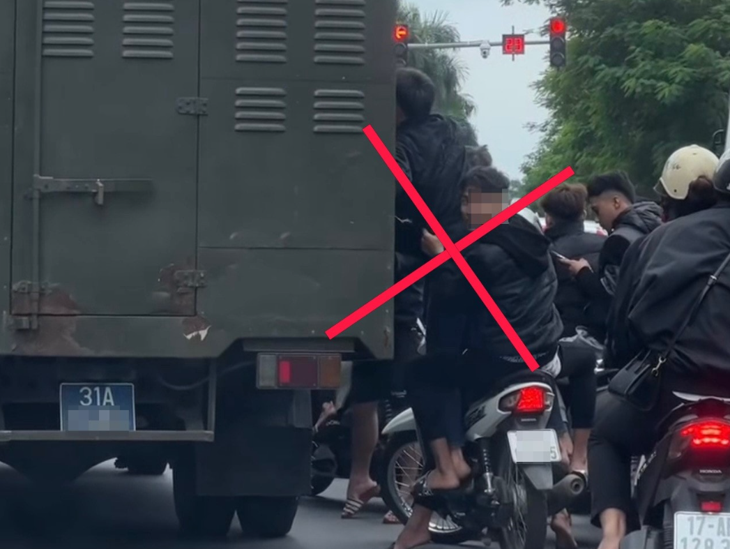 Hà Nội: Nhóm thanh niên không đội mũ bảo hiểm, đeo bám xe chở phạm nhân