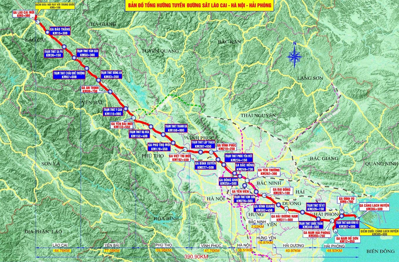 Theo Văn phòng UBND tỉnh Lào Cai, Dự án đầu tư xây dựng tuyến đường sắt Lào Cai ‑ Hà Nội ‑ Hải Phòng được Quốc hội phê duyệt chủ trương đầu tư, trong đó, tổng chiều dài tuyến chính 390,9km (đoạn Ga Lào Cai ‑ Ga cảng Lạch Huyện là 385,8km, đoạn ga Lào Cai ‑ điểm nối ray 5,1km), 3 tuyến nhánh khoảng 27,9Km, phạm vi hướng tuyến đi qua địa phận tỉnh Lào Cai khoảng 65Km đi qua thành phố Lào Cai, huyện Bảo Thắng, huyện Bảo Yên và huyện Văn Bàn. Tổng mức đầu tư là 203.231 tỷ đồng, trong đó chi phí bồi thường, hỗ trợ tái định cư là 35.751 tỷ đồng.