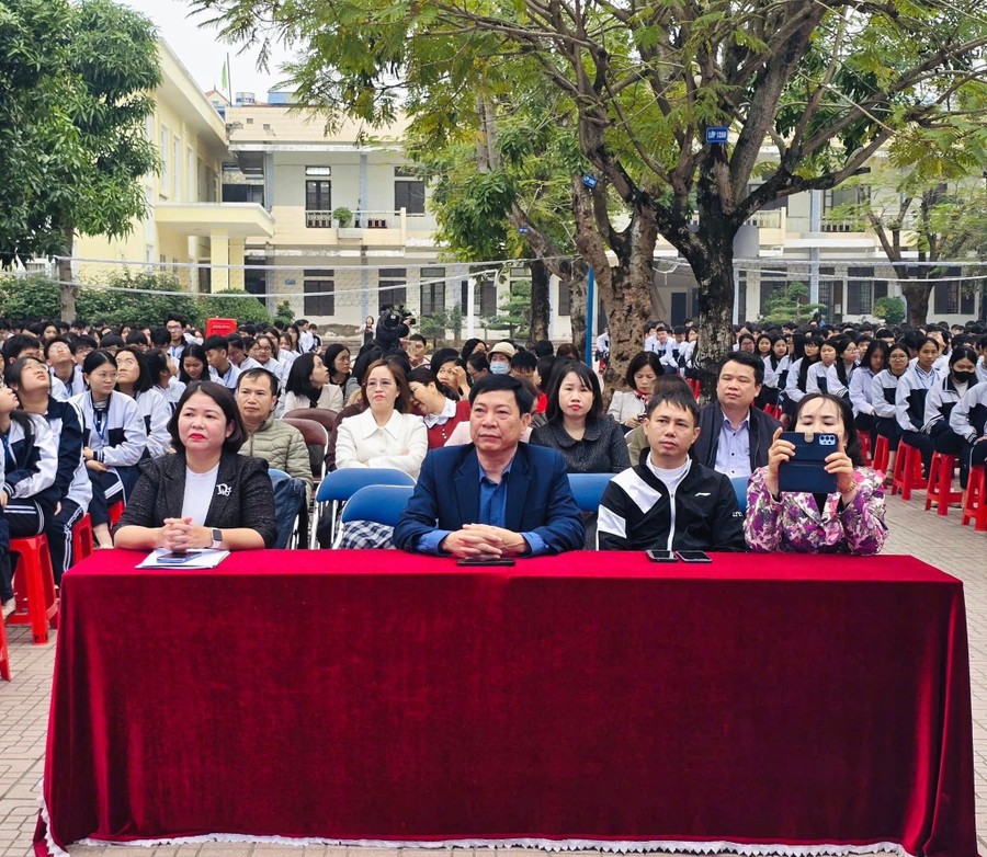Phần giao lưu trả lời câu hỏi tại Trường THPT Ngô Quyền, phường Trường Thi, tỉnh Ninh Bình sáng 22/12. |