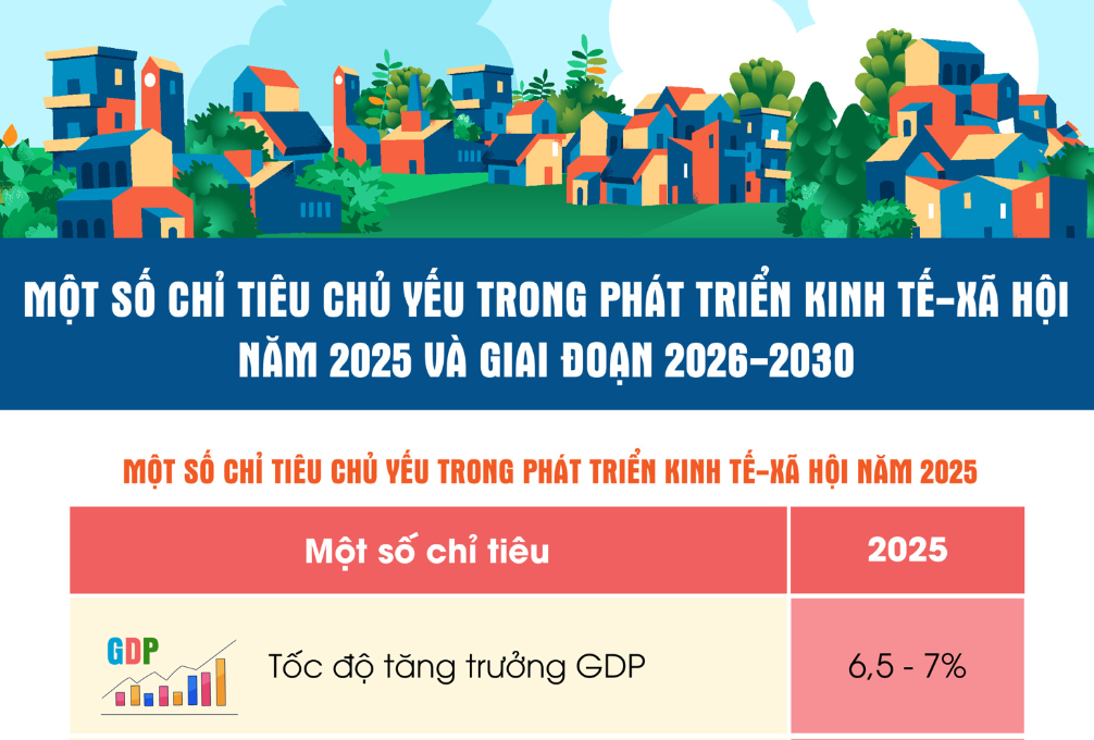 Một số chỉ tiêu chủ yếu trong phát triển kinh tế - xã hội năm 2025 và giai đoạn 2026-2030
