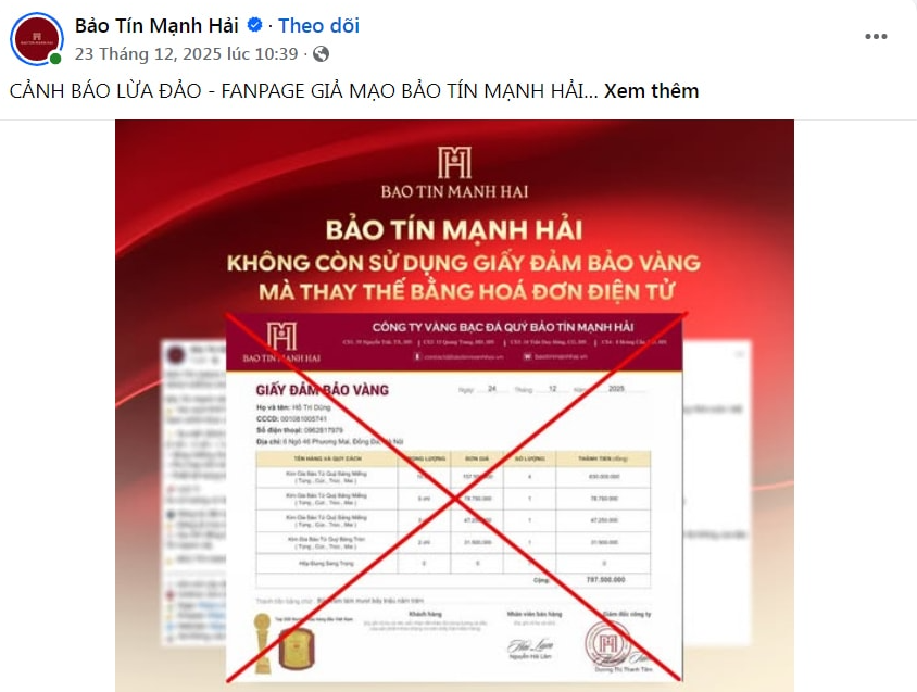 Bài cảnh báo trên một fanpage của thương hiệu vàng.