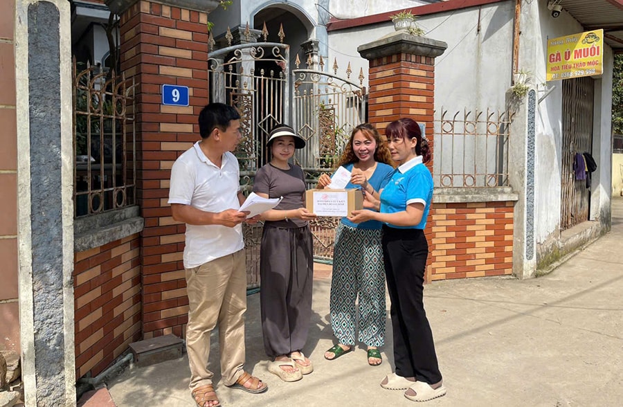 Thành viên tổ công tác lấy ý kiến nhân dân xã Song Phương (huyện Hoài Đức) về phương án sắp xếp đơn vị hành chính cấp xã. Ảnh: Ánh Dương