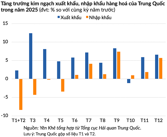Lý do là tăng trưởng kinh tế của Mỹ trong năm qua chủ yếu được thúc đẩy bởi các khoản đầu tư vào (AI), trong khi đó sức mạnh xuất khẩu của Trung Quốc được hỗ trợ bởi doanh số bán chip và thiết bị năng lượng ra nước ngoài.
