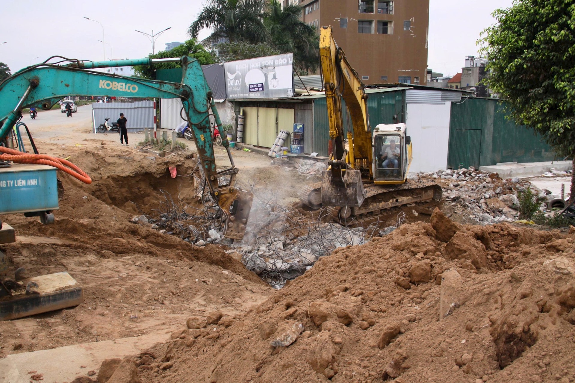 Dự án xây dựng tuyến cống xả và đoạn cống dẫn Trạm bơm Phú Thượng đang đẩy nhanh tiến độ thi công đối với phần diện tích đã bàn giao mặt bằng. Ảnh: PV