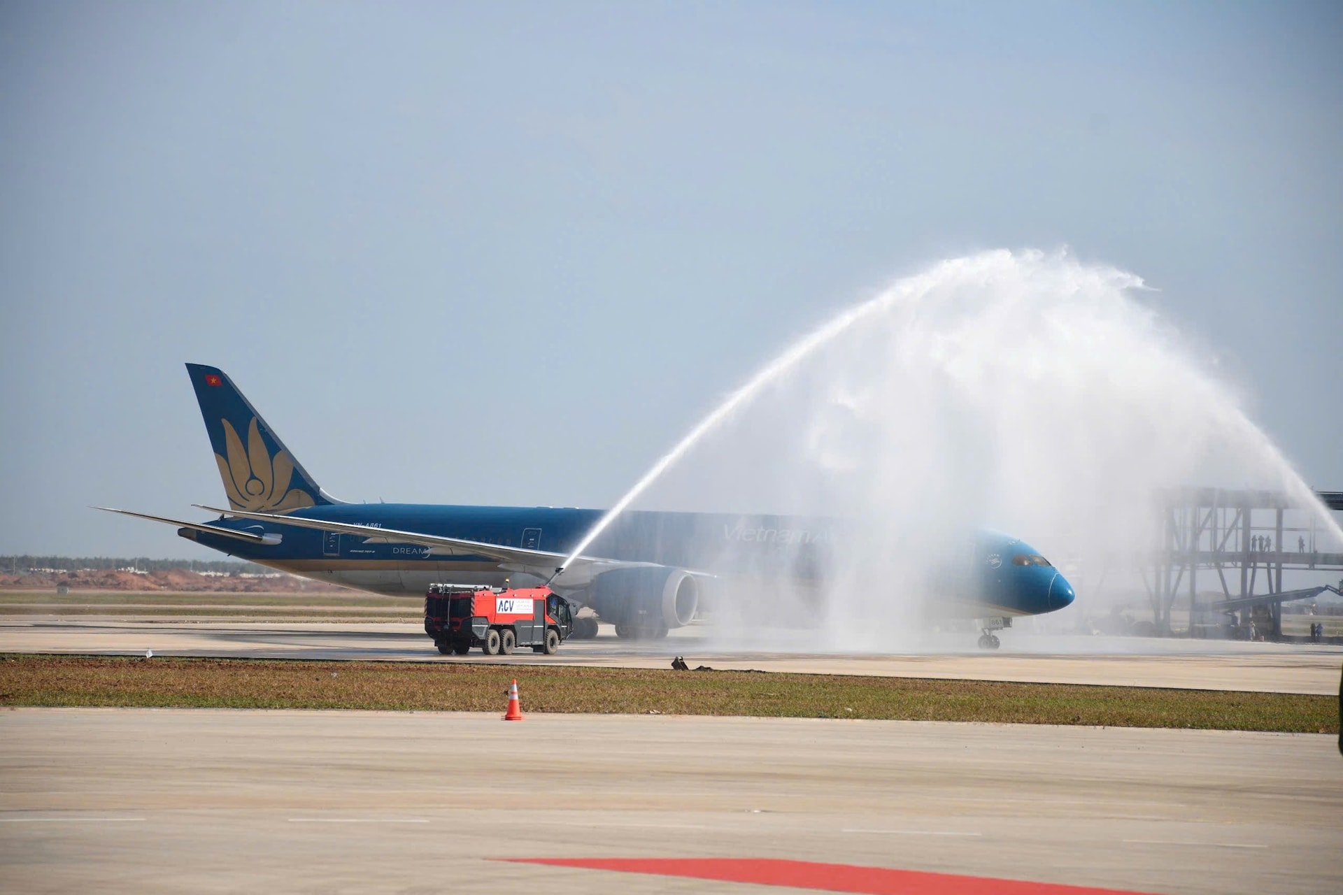 Theo ghi nhận của phóng viên Báo Hànộimới, khoảng 8h40 ngày 19-12, máy bay Boieng 787 của Hãng hàng không quốc gia Việt Nam (Vietnam Airlines) đã hạ cánh xuống sân bay Long Thành trong chuyến bay chính thức đầu tiên đến sân bay này.