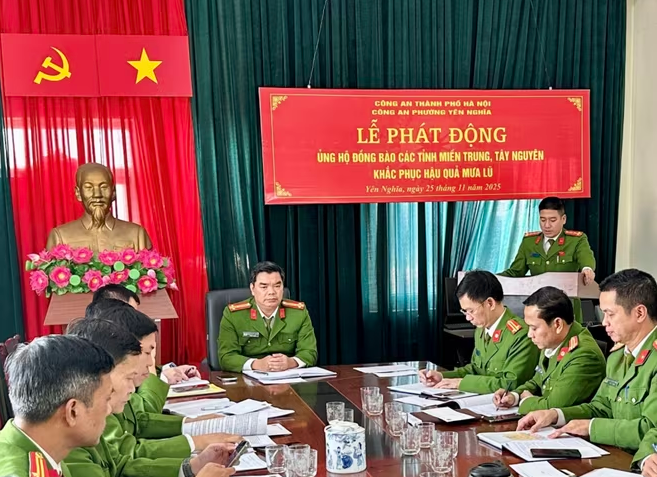 Ngày 25/11, trước tình hình mưa lũ gây thiệt hại nghiêm trọng tại các tỉnh miền Trung và Tây Nguyên, Công an phường Yên Nghĩa (Hà Nội) đã tổ chức Lễ phát động quyên góp, ủng hộ đồng bào vùng thiên tai.