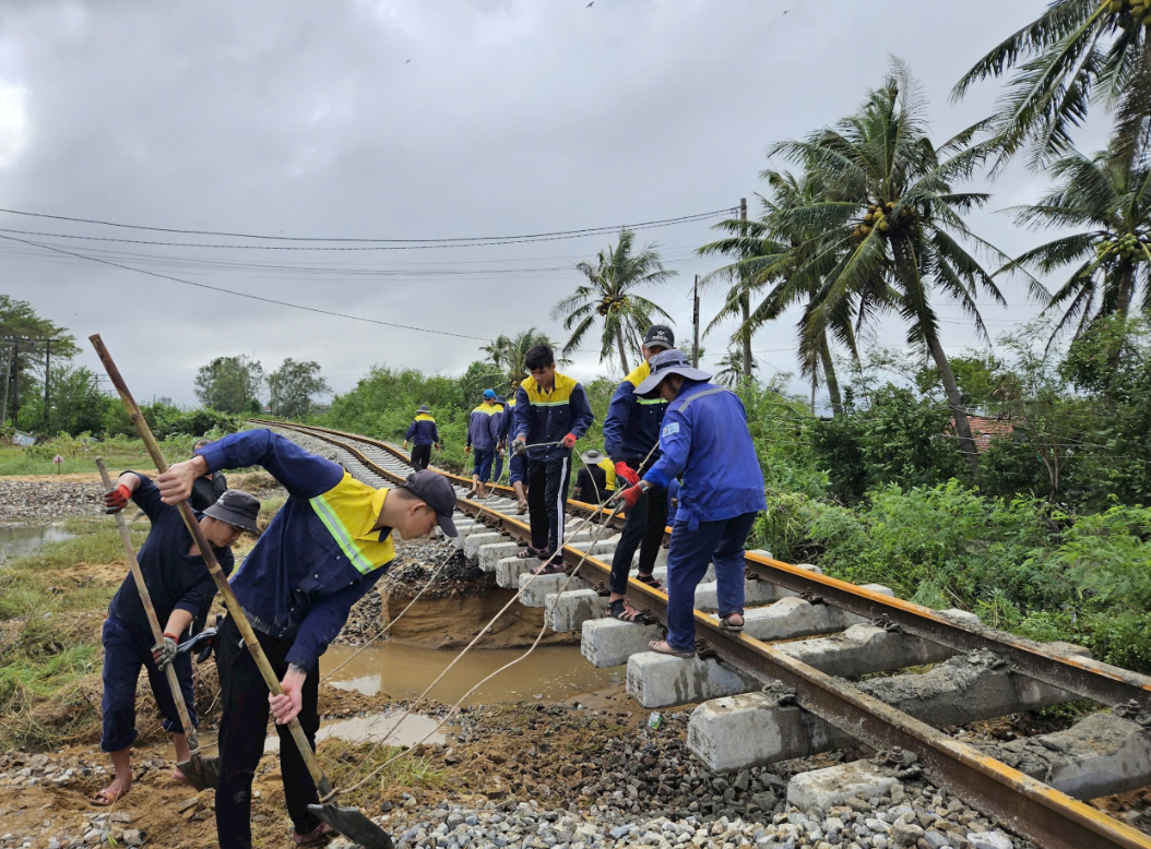 Thời gian vừa qua qua liên tiếp xảy ra bão, mưa lũ tại nhiều địa phương gây hư hỏng nghiêm trọng kết cấu hạ tầng đường sắt. Nhiều điểm bị sạt, sụt, treo ray.