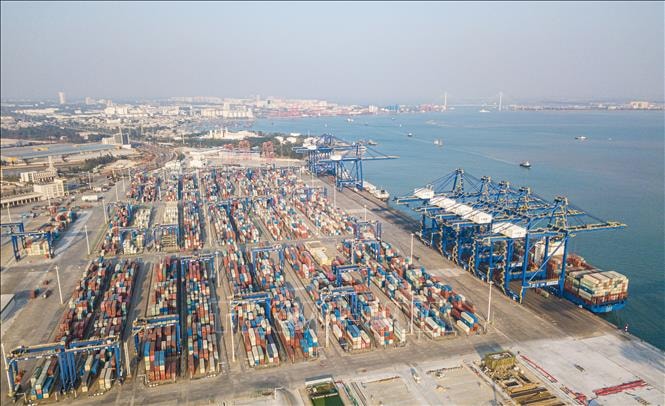 Quang cảnh cảng hàng hóa tại tỉnh Hải Nam, Trung Quốc. Ảnh: THX/TTXVN