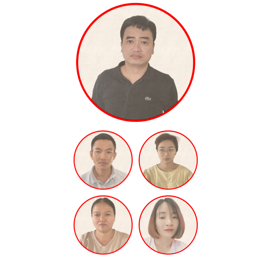Các đối tượng bị khởi tố (từ trên xuống, từ trái sang): Phan Quốc Việt, Vũ Đình Hiệp, Hồ Thị Thanh Thảo, Phan Tôn Noel Thảo và Trần Thị Hồng. Ảnh: Bộ Công an