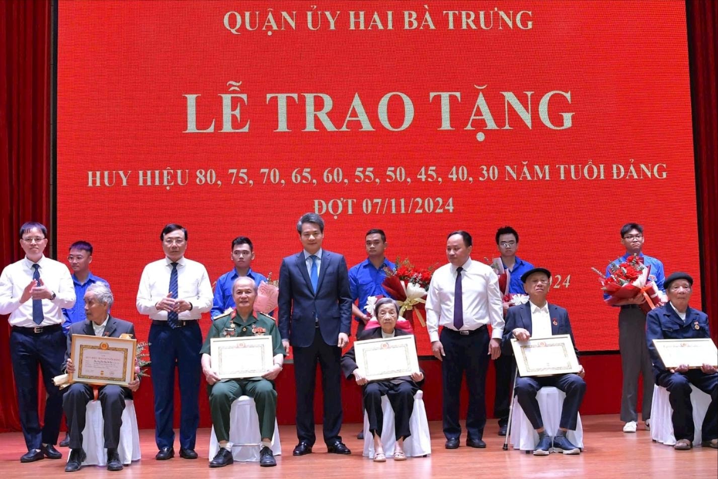 Đợt này, Đảng bộ quận Hai Bà Trưng có 320 đảng viên được trao tặng, truy tặng Huy hiệu Đảng. Trong đó, có 3 đồng chí nhận Huy hiệu 80 năm tuổi Đảng, 2 đồng chí nhận Huy hiệu 75 năm tuổi Đảng, 6 đồng chí nhận Huy hiệu 70 năm tuổi Đảng.