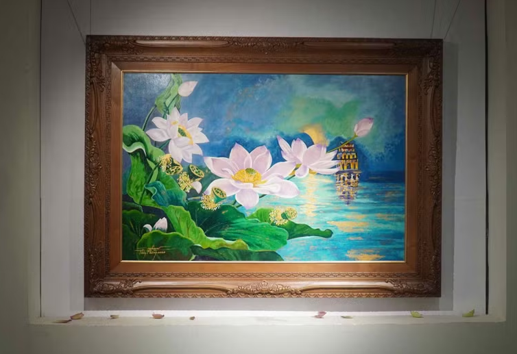 Tại không gian trưng bày, hoa sen – hình tượng xuyên suốt của triển lãm, được thể hiện qua nhiều cách tiếp cận khác nhau. Có tác phẩm đi theo lối tả thực, khắc họa vẻ đẹp gần gũi của sen trong đời sống; có tác phẩm lại nghiêng về biểu cảm hoặc cách điệu, đưa người xem đến những tầng lớp ý nghĩa mới. Sự đa dạng này không chỉ làm nổi bật góc nhìn riêng của từng họa sĩ mà còn góp phần mở rộng cách cảm nhận về một biểu tượng quen thuộc trong văn hóa Việt.