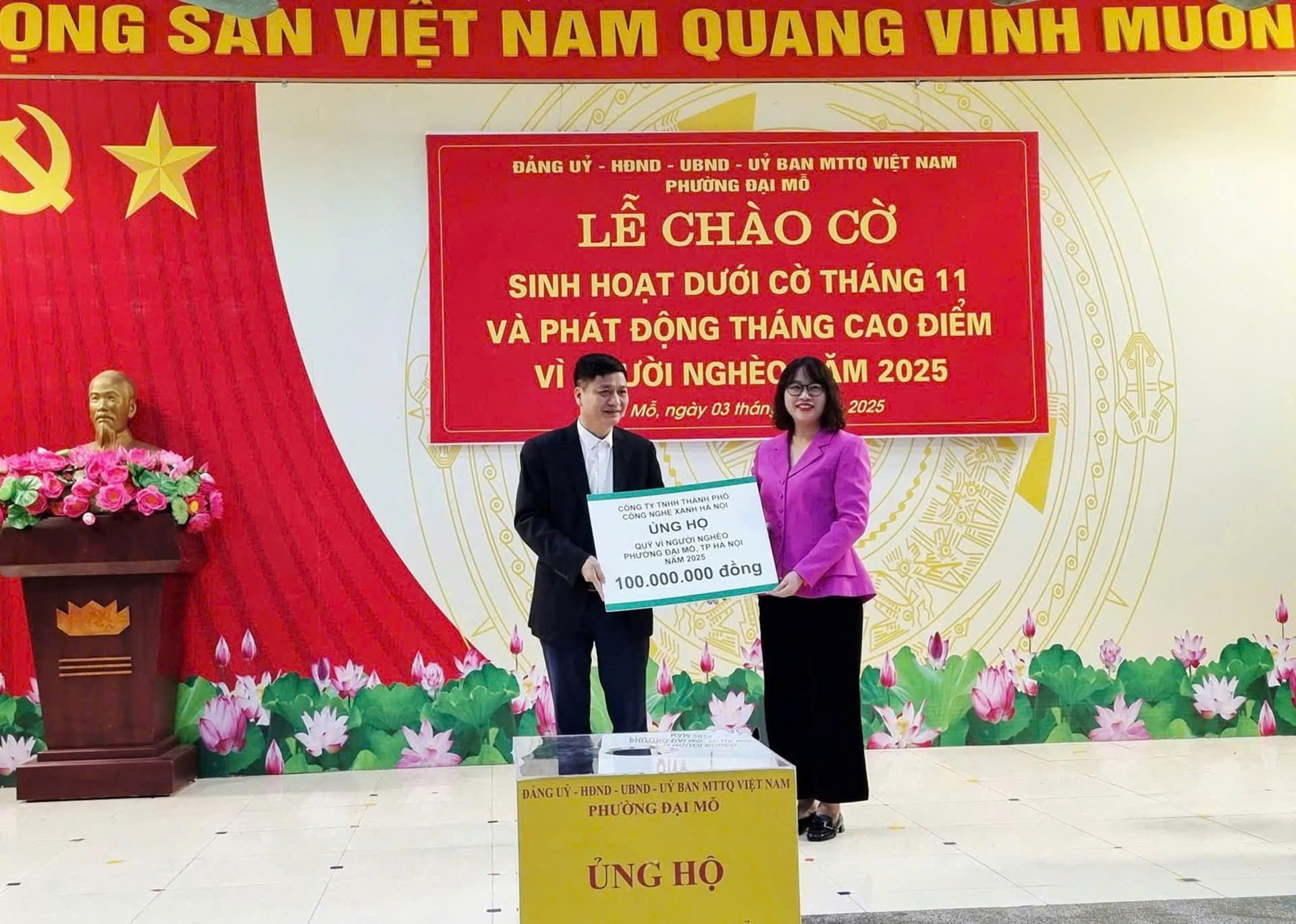 Lãnh đạo phường Đại Mỗ ủng hộ nhân dịp phường phát động Tháng cao điểm Vì người nghèo năm 2025. Ảnh: ĐM