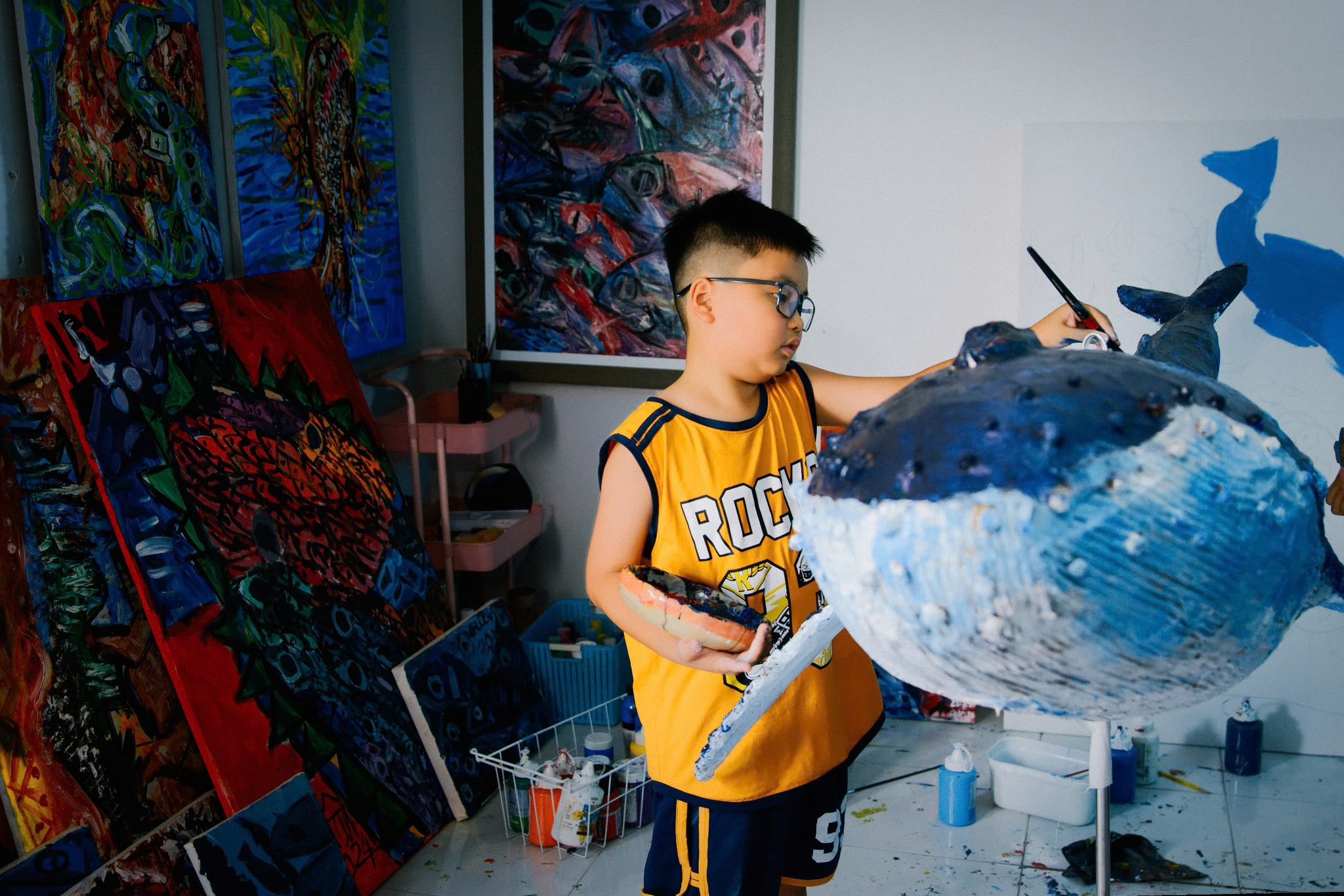 Trong bối cảnh hiện nay, khi trẻ em có vô vàn lựa chọn tiếp cận công nghệ và đa dạng các loại đồ chơi, Minh Quân, cậu bé 10 tuổi, là một trường hợp đặc biệt khi sớm xác định được niềm đam mê song hành ở cả khoa học và mỹ thuật. Tình yêu với đại dương đã thôi thúc cậu bé chọn hội họa như một phương tiện độc đáo để kể câu chuyện tuổi thơ trong veo, sâu lắng và tự do của mình.