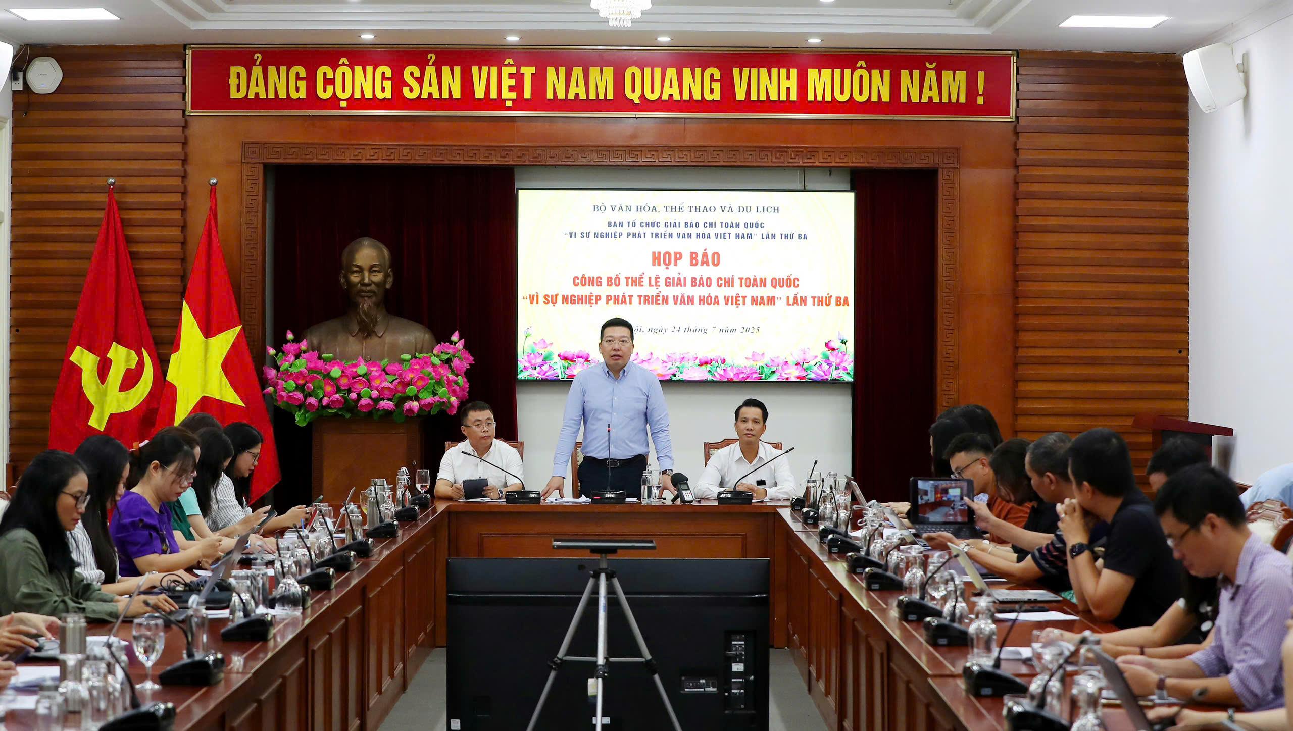 Sáng nay, 24.7, Bộ VHTTDL đã tổ chức họp báo, công bố Thể lệ Giải báo chí toàn quốc "Vì sự nghiệp phát triển Văn hoá Việt Nam" lần thứ 3.