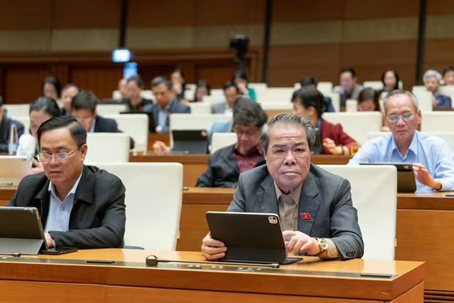 Trong phiên họp sáng nay, 3-12, Quốc hội nghe Báo cáo việc thực hiện một số nghị quyết của Quốc hội Khóa XIV và khóa XV về giám sát chuyên đề và chất vấn.