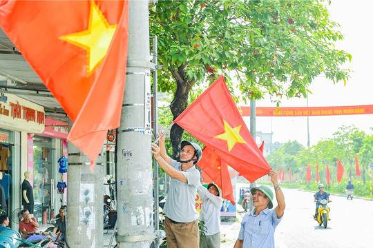 Treo cờ Tổ quốc nhân kỷ niệm 71 năm Ngày Giải phóng Thủ đô