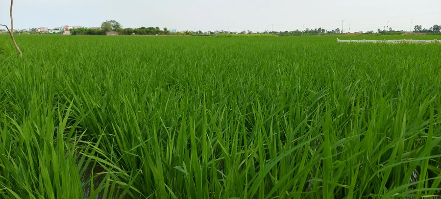 | Đầu hạ, lúa chiêm bỗng 'phất' lên bời bời khi có tiếng sấm đón chào mưa đến. Ảnh: Bình Thanh |